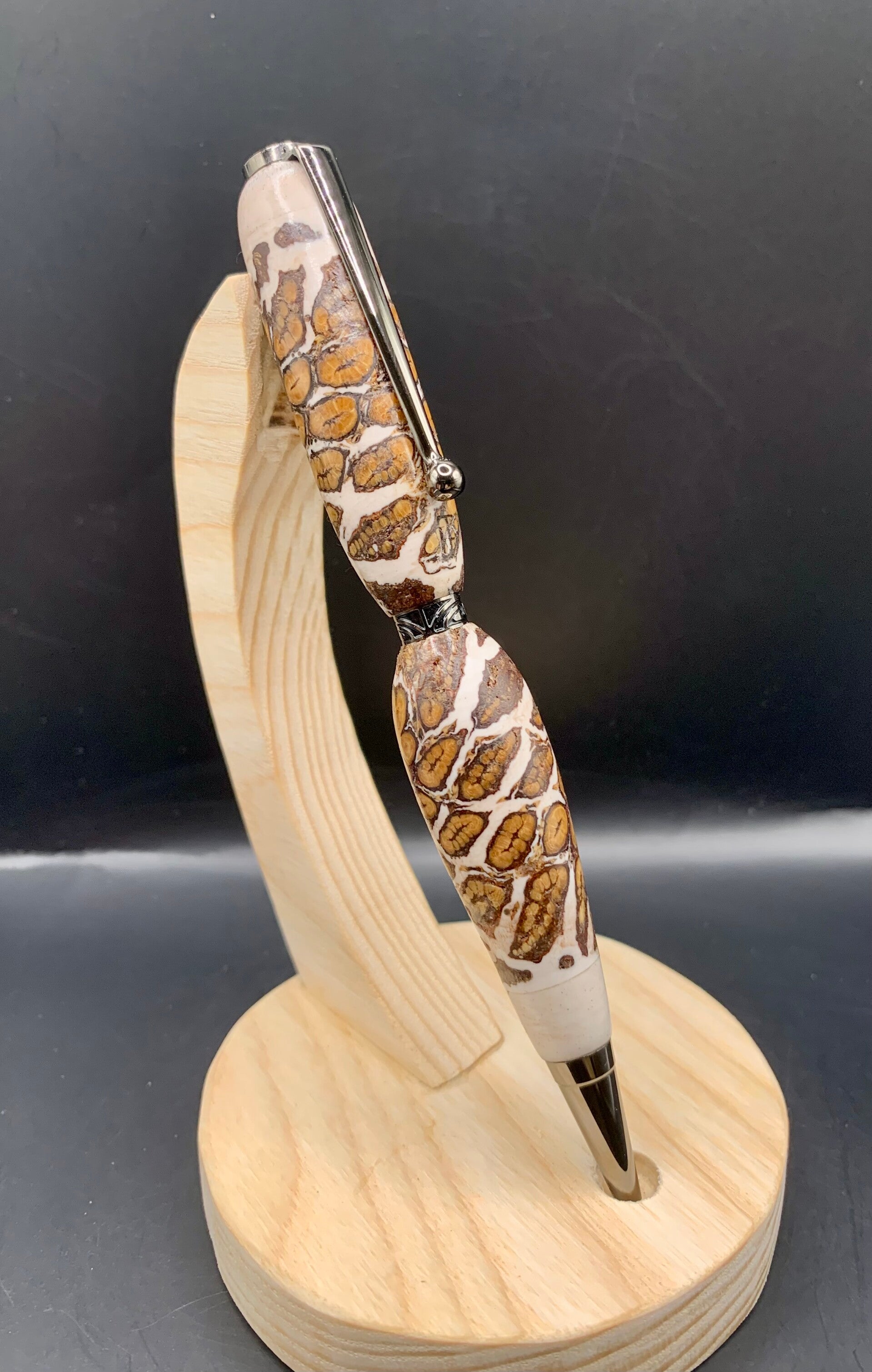 J’aime tenter des créations nouvelles et très souvent farfelues pour mes stylos artisanaux. Je dois avouer très humblement que (très😉) souvent mes essais tournent au fiasco 😊,mais parfois, j’ai la surprise d’une possible réussite.
